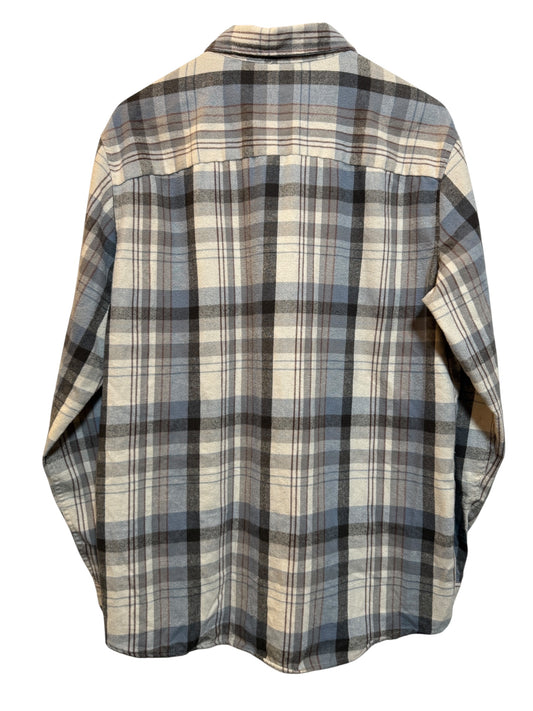 Split Mens Blue White Plaid Flannel Shirt (Size XL)