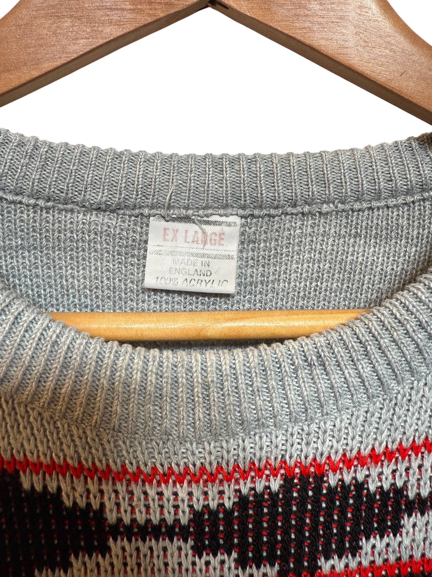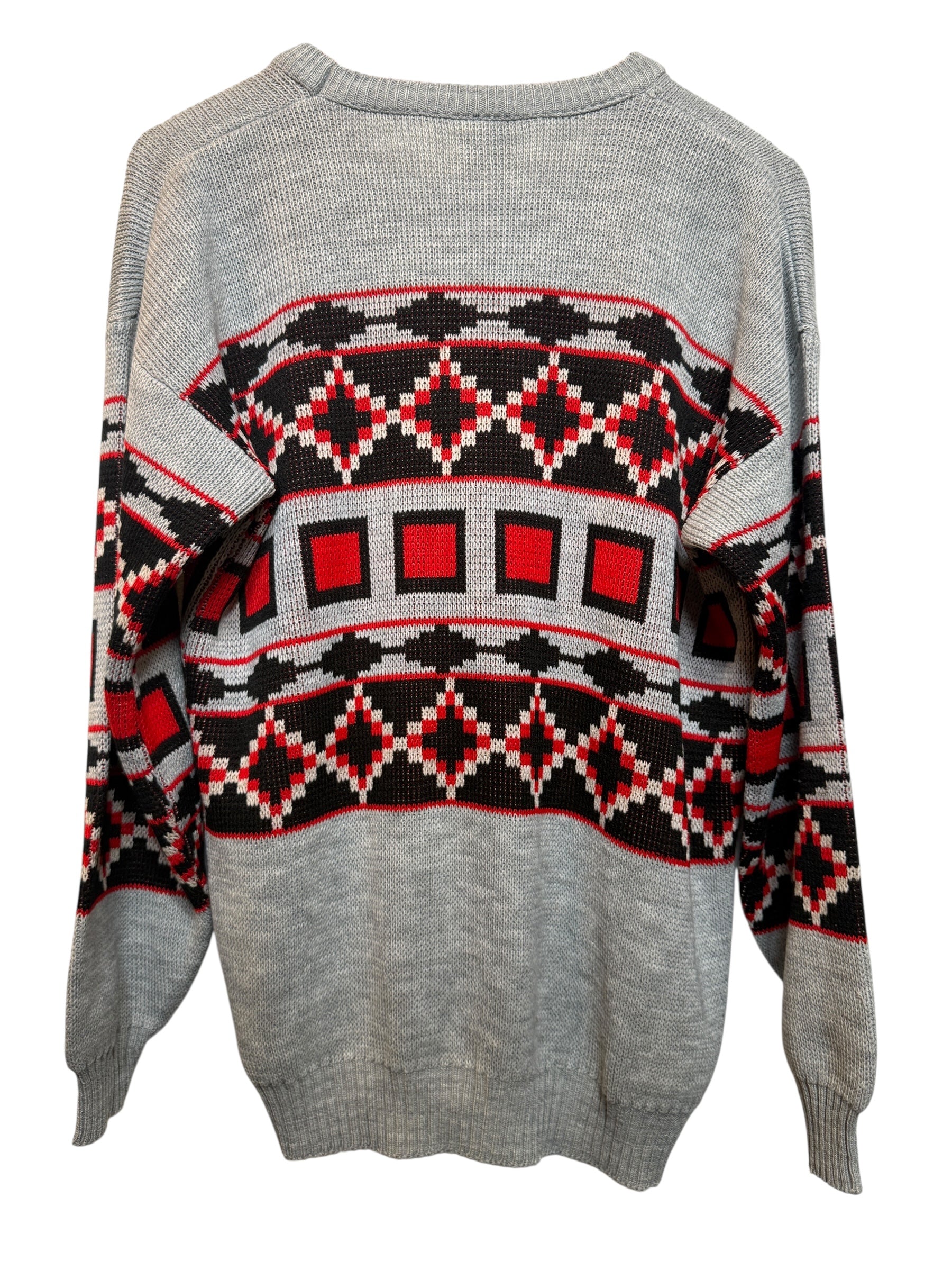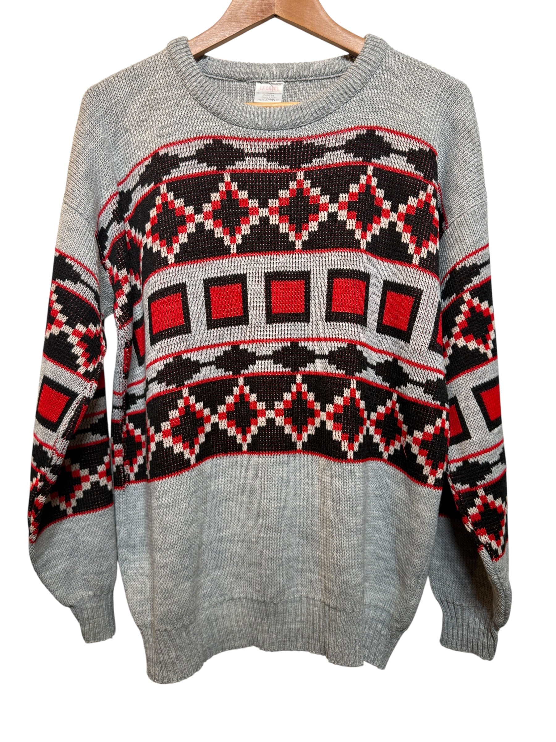 Grey Aztec Patterned Knitted Sweater (Size L)